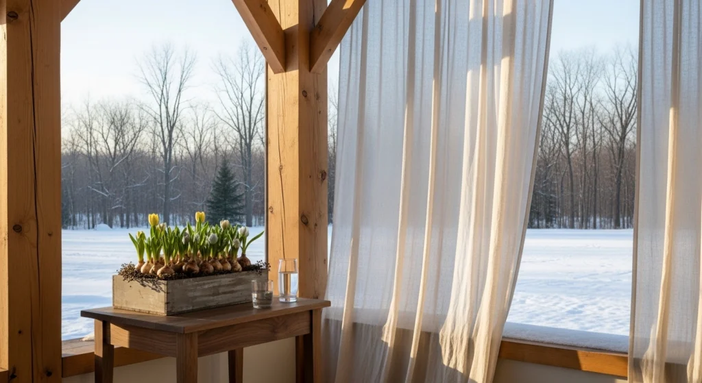 13. A Cozy Winter Garden Nook Made for Quiet Evenings