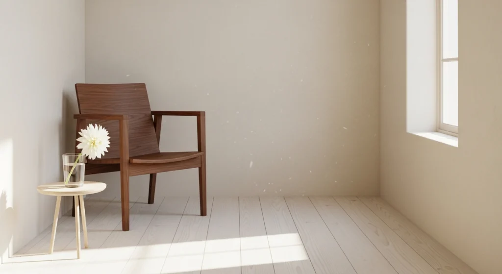 A neutral palette in winter is a study in “Visual Silence,” utilizing tones of bone-colored Roman clay and grey limestone to create a calming, un-cluttered foundation. The layout prioritizes the movement of light, ensuring that the sun-washed clarity of a winter morning is reflected across the wide-plank white oak floors. We utilize the principle of “Singular Intent” by selecting a single, high-end Home Essentials piece—like a minimalist walnut armchair—to anchor the space without disrupting the structural flow. Styling the area with a glass half-filled with water and a single white dahlia emphasizes the room’s refined elegance. This disciplined aesthetic ensures the porch remains a sophisticated haven that feels both warm and professionally curated.