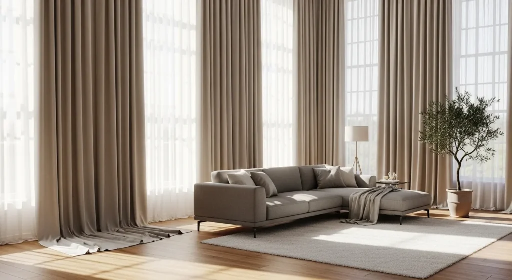 Curtains are one of the easiest ways to blend both colors together. Choose curtains that include both grey and beige tones or layer sheer beige curtains with heavier grey drapes. This approach softens natural light and adds elegance. Floor-length curtains also make the ceiling appear taller. The room immediately feels more polished and finished. Curtains help connect wall colors and furniture naturally.