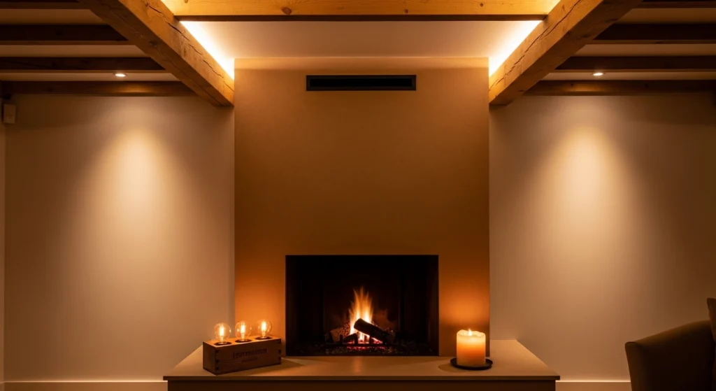 Mastering the winter tavern requires a commitment to “Layered Lighting” and architectural warmth that defies the frost. We utilize a minimalist stone-clad fireplace finished in a mushroom-toned Roman clay to act as the primary structural anchor for the space. The layout is optimized to capture a “Glowy” evening energy, using recessed LED strips to highlight the timber beams and the grain of the wood. We style the hearth with a rustic wooden box of specialized bulbs and a single burning beeswax candle. This fireside strategy ensures the pub shed remains a vibrant, high-end environment for winter gatherings, reflecting the modern homeowner’s discipline and appreciation for atmospheric, professional-level curation.