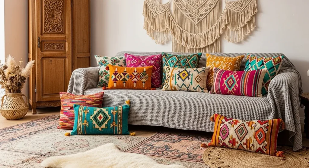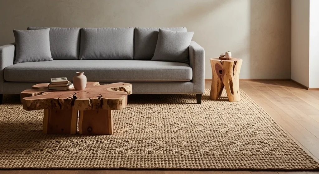 5. Grey Sofa with Layered Neutral Textures