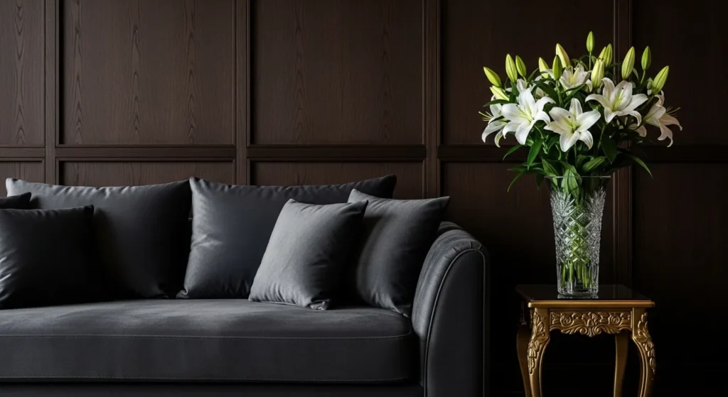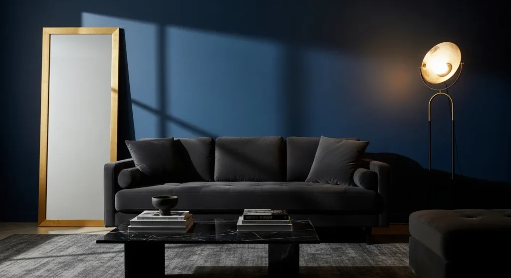 A charcoal or dark grey sofa instantly adds depth and sophistication. Balance it with beige throw pillows, warm-toned curtains, and a natural wood coffee table. The beige elements soften the boldness of the darker shade. Use warm lighting to enhance the cozy atmosphere in the evenings. This approach creates contrast without making the room feel heavy.
