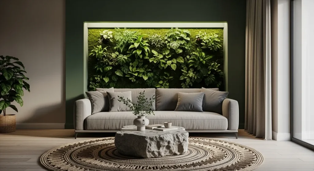 Install wooden paneling behind your sofa for warmth and texture. The natural wood contrasts beautifully with grey upholstery. Add subtle lighting to highlight the texture. This idea feels modern yet cozy at the same time. It works in both contemporary and rustic homes.
