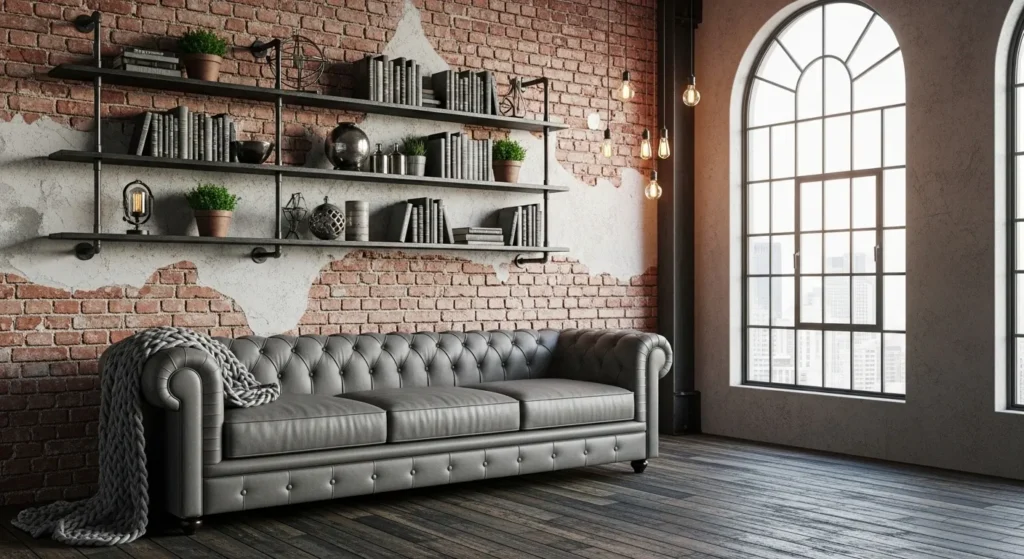 Combine a grey sofa with black metal shelving and exposed brick walls. Add leather accents and minimal decor. Keep the color palette slightly darker for authenticity. Industrial design pairs naturally with grey tones. It creates a strong and stylish urban look.