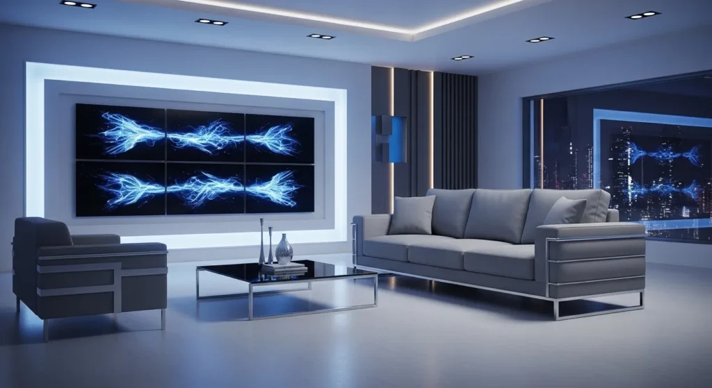 Choose a large pendant light or modern chandelier above the seating area. Lighting becomes the visual highlight while the sofa remains neutral. Keep furniture placement symmetrical. Good lighting transforms the entire atmosphere of the room.