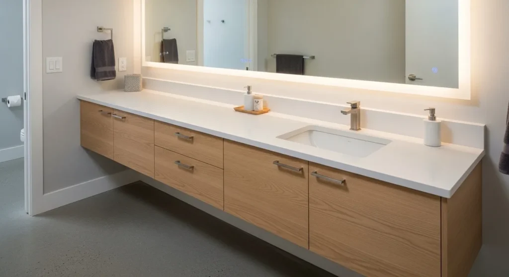 Style Note: Floating vanities are especially effective in small bathrooms where every inch of floor space counts.