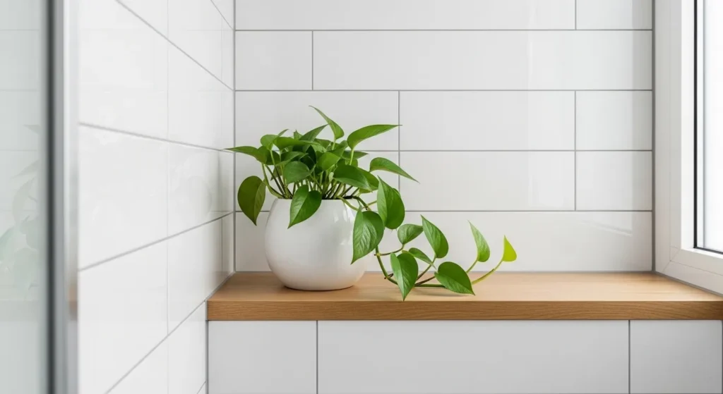• Choose low-maintenance, humidity-tolerant plants like ferns or pothos.