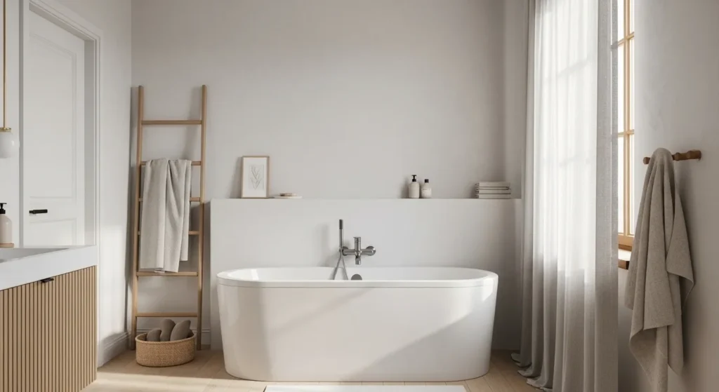 A neutral color palette instantly makes a bathroom feel spacious and calming. Soft whites, light grays, and beige tones create an airy backdrop that reflects light and amplifies natural brightness. Neutral shades also allow furniture, fixtures, and textures to stand out without making the space feel cluttered.