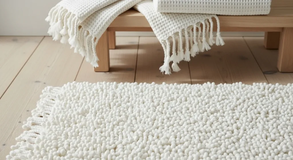 • Layer textures with soft textiles like towels or rugs for a cozy touch.