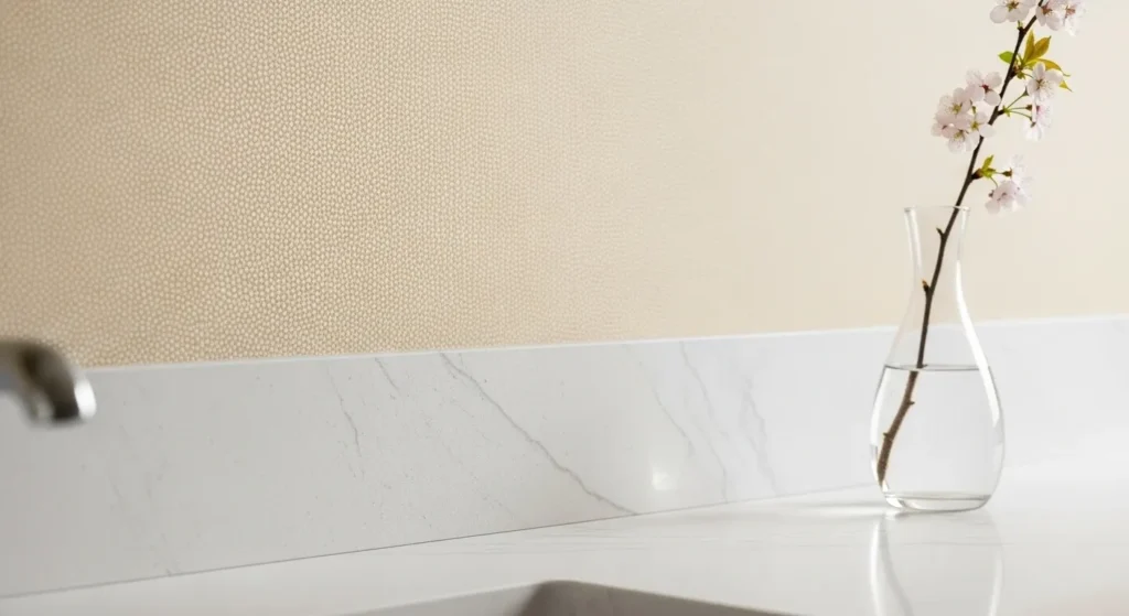 Subtle textures in tiles, countertops, or wall finishes add depth without cluttering the room. Matte tiles, honed stone, or micro-patterned wallpaper creates visual interest while keeping the design calm.