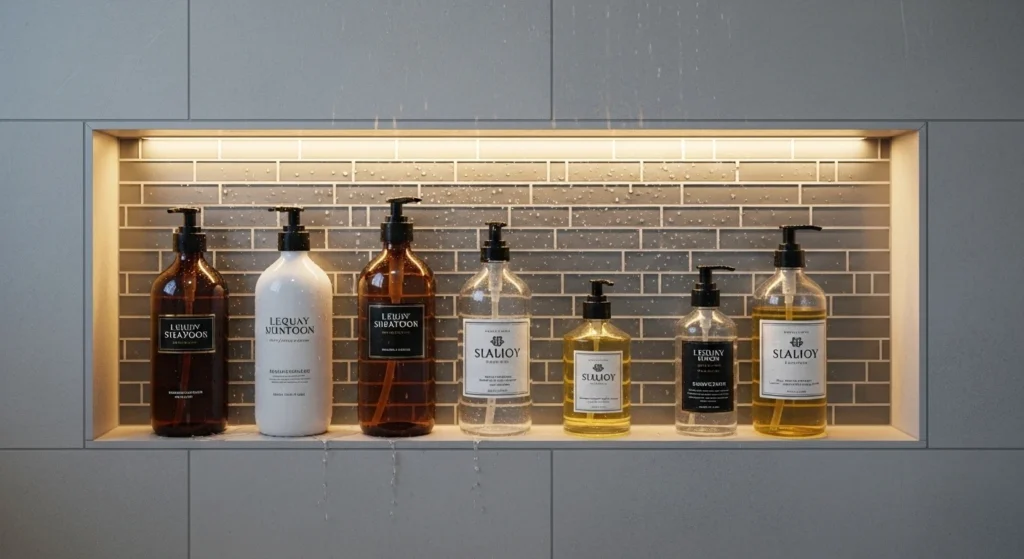 • Incorporate niche shelves inside the shower for toiletries without adding bulky storage.