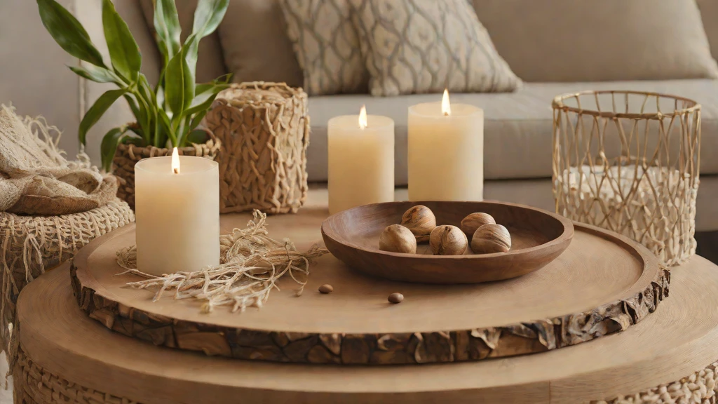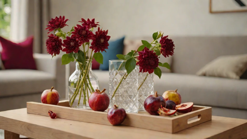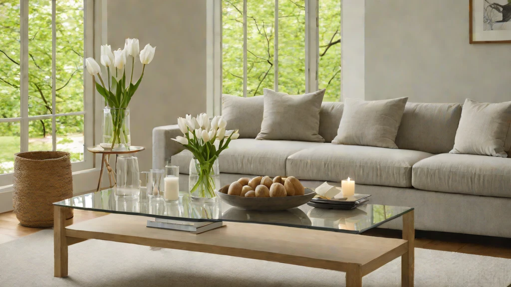 Neutral palettes can appear “flat” or uninspiring without the correct interaction with light. Position your coffee table to capture the “Sun-Washed” morning light, allowing it to reflect off a glass surface or a polished stone bowl. This creates an optimistic environment that feels revitalized and fresh. Style with a rustic wooden box of fresh pomegranates for a pop of organic color.