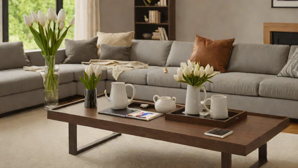 Large coffee tables often feel empty or “vacant” when styled with only one item. Create a “Weighted Balance” by placing a heavy stack of books on one side and a tall, thin vase on the other. This utilizes “Visual Flow” to move the eye across the surface. Add a small walnut tray for everyday Home Essentials.