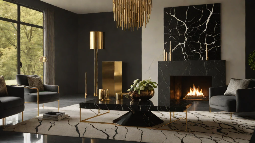 Glamorous styles can often lean into “Visual Noise” through excessive shine and over-embellished accessories. Opt for Moody Luxe by pairing a black marble coffee table with a single sculptural brass object. This high-contrast approach highlights the Aqueous Serenity of the stone. For more on this bold aesthetic, explore our Dark Moody Powder Room Ideas.