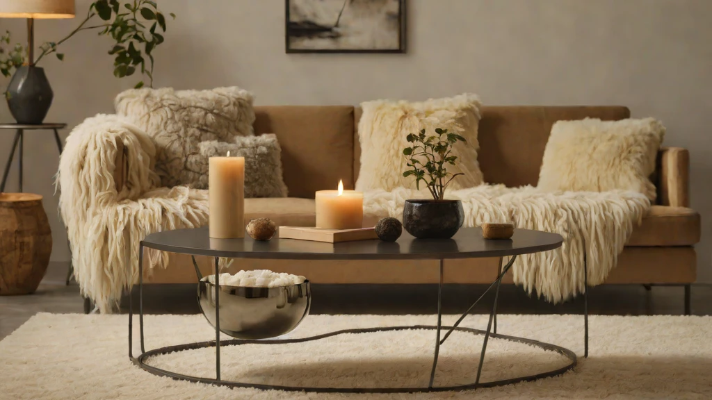 Mixing “Rustic” and “Modern” can look accidental if the materials aren’t high-fidelity. Pair a sleek, metal-framed table with a luxe, sheepskin throw draped nearby and a stone bowl filled with moss. This intersection of Grounded Materiality and modern design creates a restorative cocoon that feels both professional and deeply soulful.