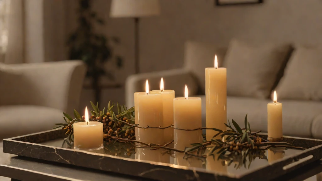 Artificial plants or poorly placed greenery can look “cheap” and detract from a stately environment. Use a single, structural branch in a glass vase to introduce a sense of life and Aqueous Serenity. Pair this with multiple burning beeswax candles on a stone tray to create a permanent, restorative sanctuary for evening reflection.