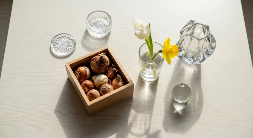 The transition begins with the “Final Touches” that signal the arrival of a new season through “Active Decor.” Instead of simply removing winter items, replace them with objects that have an architectural weight and a fresh, organic soul. Consider a rustic wooden box holding a few specialized bulbs placed on a walnut sideboard, or a single glass half-filled with water with a long-stemmed white dahlia on the mantel. These elements act as sensory anchors, bridging the gap between the indoors and the blossoming world outside. By focusing on these high-intent details, you ensure that the home doesn’t just look different, but feels “Clean and Calm,” reflecting a lifestyle of curated sophistication and seasonal renewal.