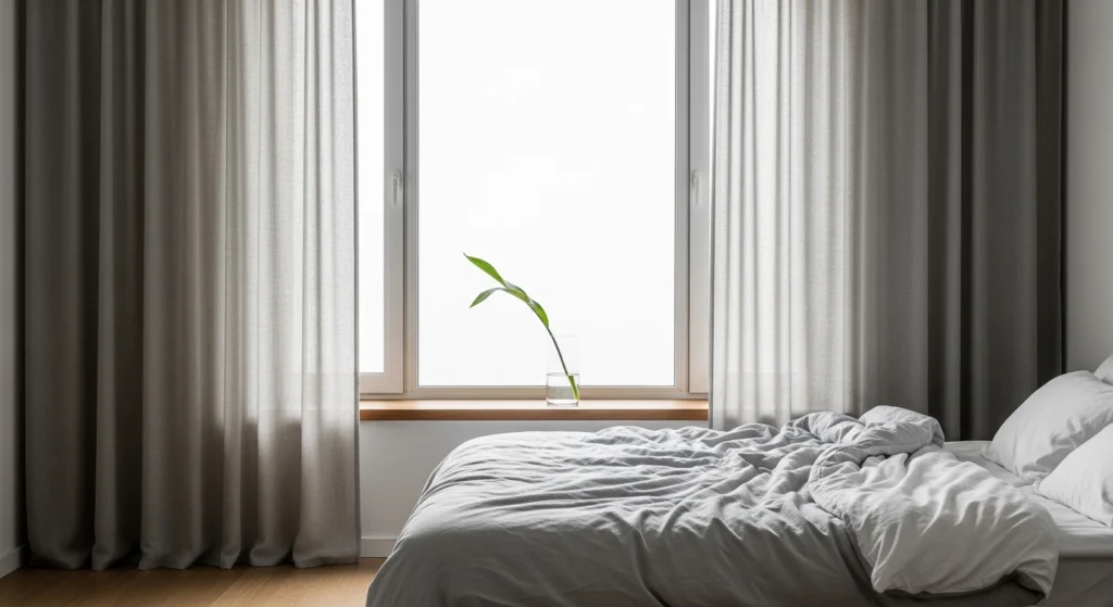 A “Refreshed” bedroom transition is achieved through the use of “Balanced Geometry” and light-toned materials that reflect the morning sun. We use sheer linen curtains to allow the light to “Wash” the room in a soft glow, highlighting the texture of the plaster walls and the grain of the oak floors. Keep the furniture layout open and expansive, utilizing “Background Architecture” for all storage needs to maintain a “Clean and Calm” aesthetic. Styling a window sill with a glass of water and a single long-stemmed green leaf provides a simple, organic anchor for the room. This focus on light and balance creates an optimistic and expansive environment that is perfect for the transition into the warmer months.