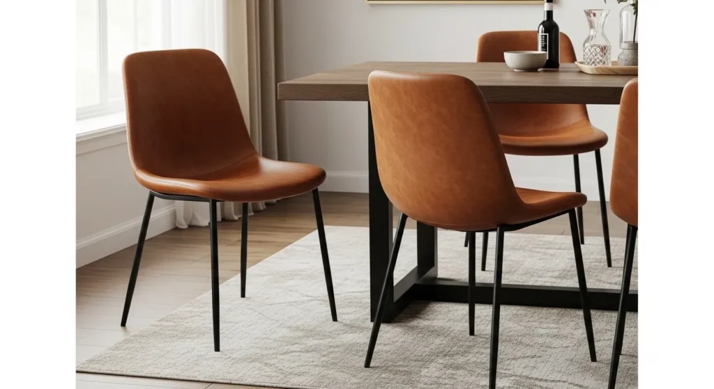 Pro Tip: To keep the leather from feeling too “office-like,” choose chairs with visible stitching or quilted details to add a layer of residential warmth and craft.