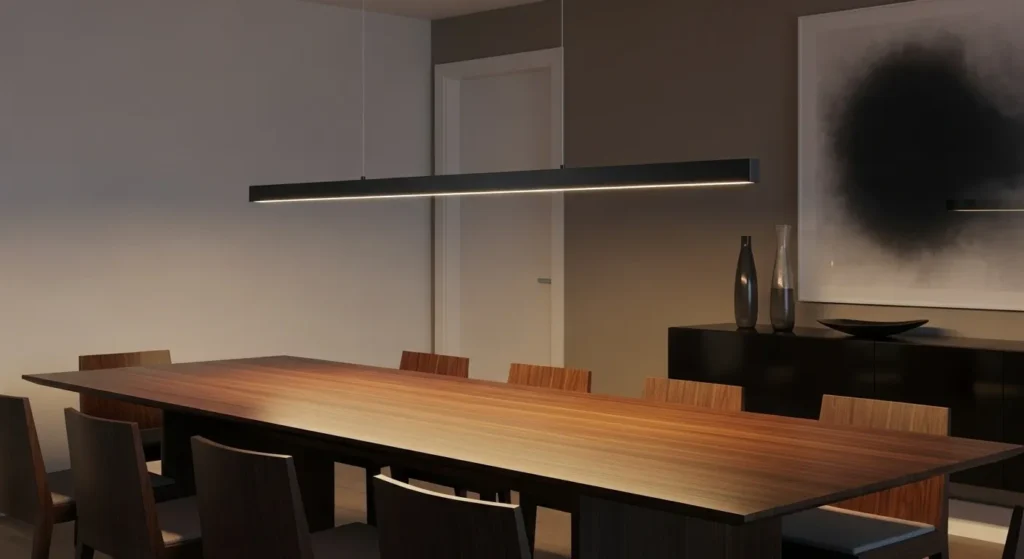 Pro Tip: Hang linear pendants slightly lower than round ones—about 28 to 32 inches above the table to create a more intimate and focused light source.