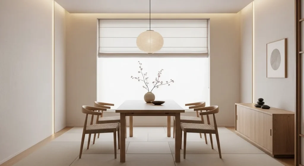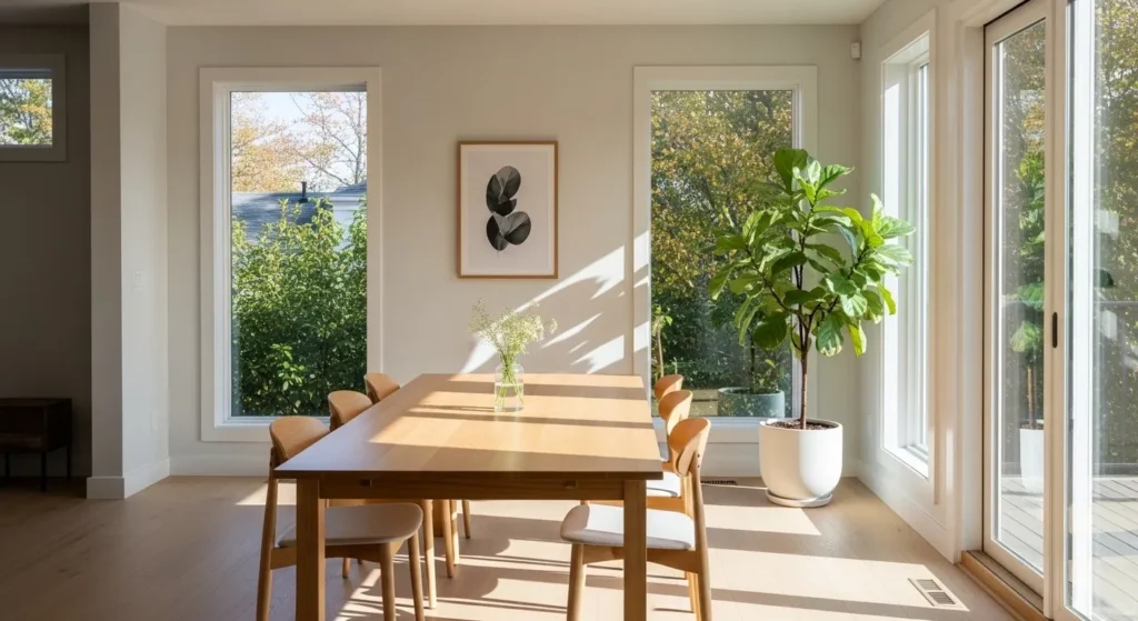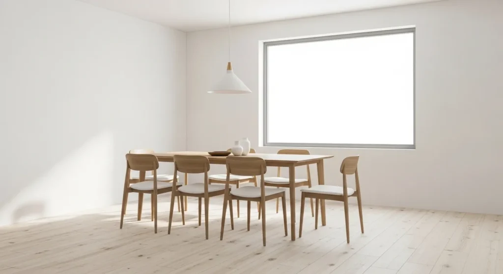 A minimalist dining room focuses on less, but better. Clean lines, open space, and simple furniture make the room feel calm and airy. The goal is to remove distractions and keep only what is useful and beautiful.