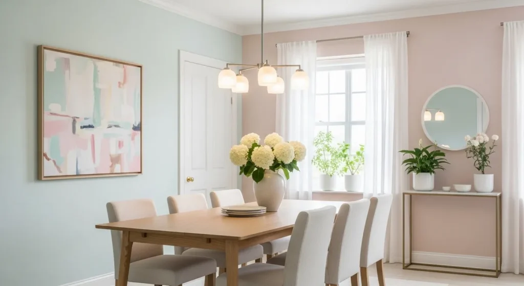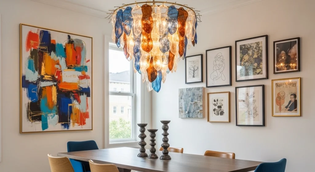 An art-inspired dining room feels personal and creative. Artwork, prints, or gallery walls make the space unique.