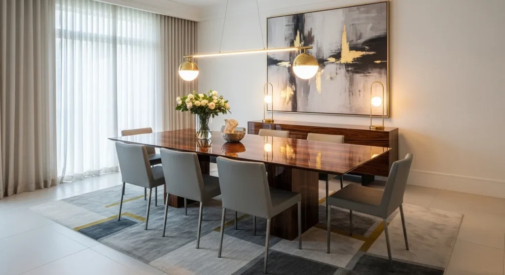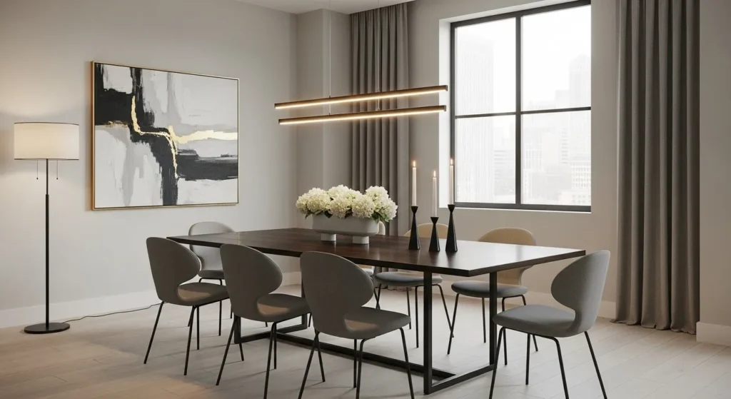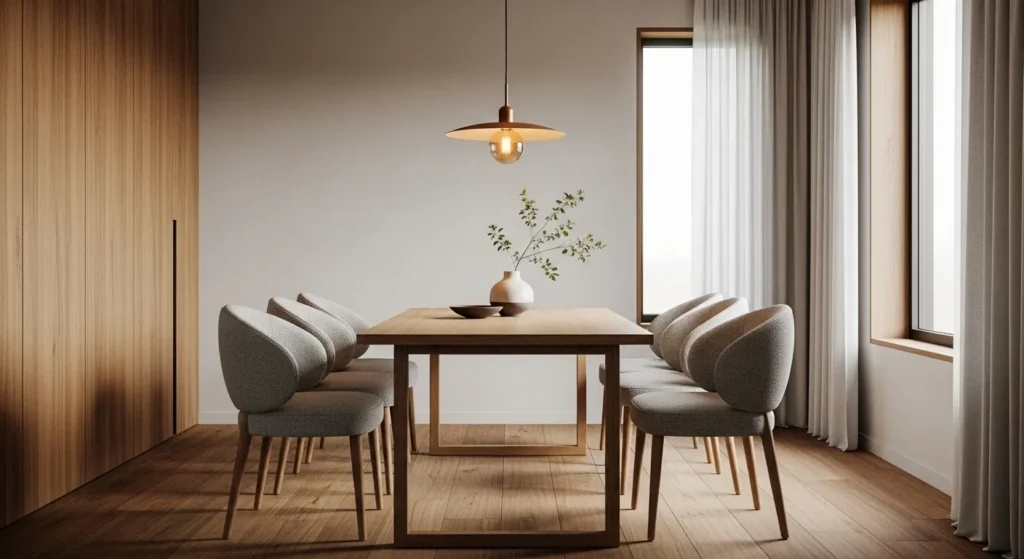 Modern dining rooms focus on balance—nothing feels too heavy or too plain.
