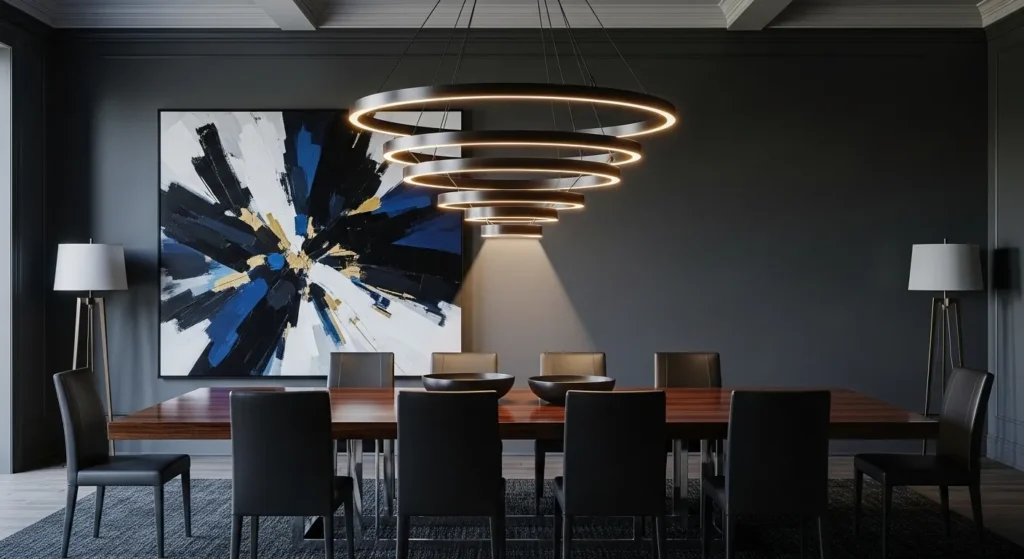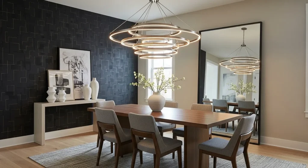 Lighting can completely change how a dining room feels. A bold chandelier or pendant light can become the main feature of the room and set the mood instantly.