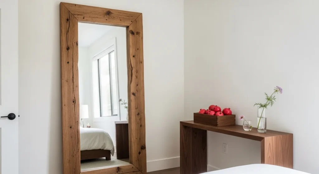 The most important rule in small bedroom design is to prioritize “Visual Flow” over the number of furniture pieces. Designers often sacrifice a second nightstand or a chair to ensure there is a clear, unobstructed path around the bed, which immediately makes the room feel twice its size. Use large leaning mirrors with rustic timber frames to reflect the “Sun-Washed” light and double the perceived visual volume of the hallways and corners. This commitment to “Visual Silence” ensures the room remains a sanctuary rather than a storage unit. By focusing on the quality of your materials—walnut, stone, and linen—and leaving plenty of “breathing room,” you create a high-end environment that reflects a lifestyle of curated sophistication, discipline, and modern architectural soul.
