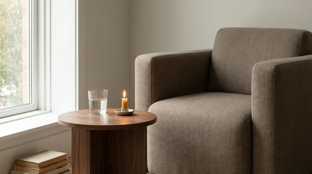 Designing a cozy reading nook is an exercise in “Zero-Waste Geometry.” By placing a single, high-fidelity armchair near a window, you create a private threshold for reflection. The layout should prioritize “Sun-Washed” clarity to foster an optimistic atmosphere. We style the side table with a glass of water and a single flickering beeswax candle.